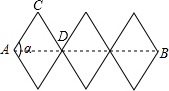 如图,活动衣帽架由三个菱形组成,利用四边形的不稳定性,调整菱形的内角α,使衣帽架拉伸或收缩,当菱形的边长为15cm,α=120°时,A、B两点的距离为