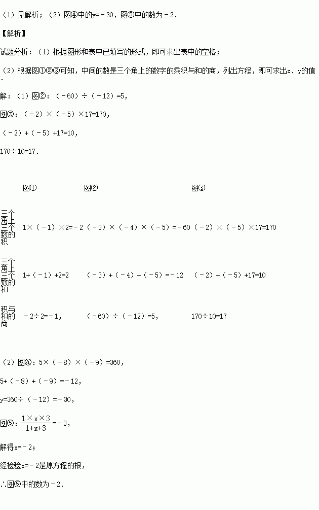 (2)请用你发现的规律求出图④中的数y和图⑤中的数x.