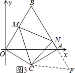 延长BA至点F,使AF=OM,连接CF.(如图3)![]()