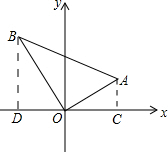 分析 根据已知和勾股定理求出OB,根据三角形的面积公式求出△ABO的面积,作AC⊥x轴于C,BD⊥x轴于D,根据直角三角形的性质求出AC、OC得到点A的坐标,求出OB、OD得到点B的坐标.