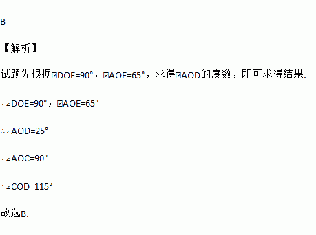 如图,∠AOC=∠DOE=90°,如果∠AOE=65°,那么∠COD的度数是( )
