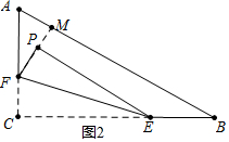 ②如图2,延长FP交AB于M,当FP⊥AB时,点P到AB的距离最小.(点P在以F为圆心CF为半径的圆上,当FP⊥AB时,点P到AB的距离最小)