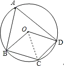 分析 连接OC,根据OB∥DC,OD∥BC,OB=OD可知四边形OBCD是菱形,故OB=BC=OC,由此可得出∠OBC=60°,再由OB∥DC可知∠BCD+∠OBC=180°,再由圆内接四边形的性质可知∠BCD+∠OBC=180°,由此可得出结论.