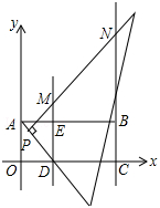 7.如图,在平面直角坐标系中,矩形OABC的边OA=2,OC=6,在OC上取点D将△AOD沿AD翻折,使O点落在AB边上的E点处,将一个足够大的直角三角板的顶点P从D点出发沿线段DA→AB移动,且一直角边始终经过点D,另一直角边所在直线与直线DE,BC分别交于点M,N.