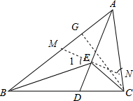分析 过E作MN⊥AD,交AB、AC分别于点M、N,易证△AMN是等边三角形,证明△BME∽△ENC,根据相似三角形的对应边的比相等即可求得BM、CN的长,作CG⊥AB于点G,在直角△BCG中,利用勾股定理求解.