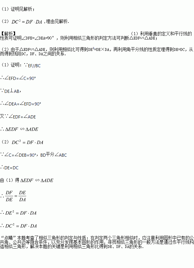 如图,在Rt△ABC中,∠C=90°,BD平分∠ABC,交AC于D,DE⊥AB于E,EF∥AC于F。