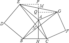 分析 利用“角角边”证明△ABH和△EAP全等,根据全等三角形对应边相等可得EP=AH,同理可证GQ=AH,从而得到EP=GQ,再利用“角角边”证明△EPM和△GQM全等,根据全等三角形对应边相等可得EM=MG.