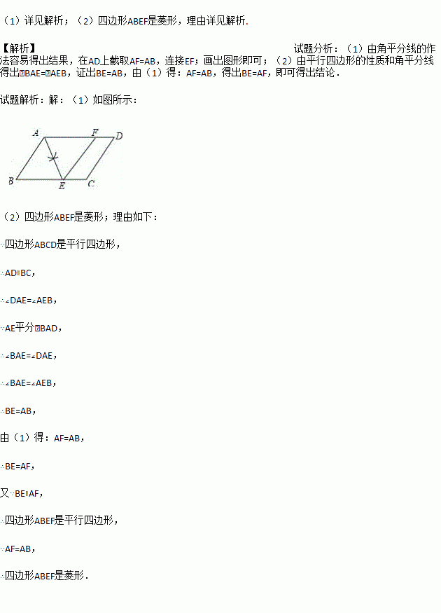 (1)实践与操作:作∠ADC的平分线交AB于点E,在DC上截取DF=AD,连接EF;(要求:尺规作图,保留作图痕迹,不写作法)
