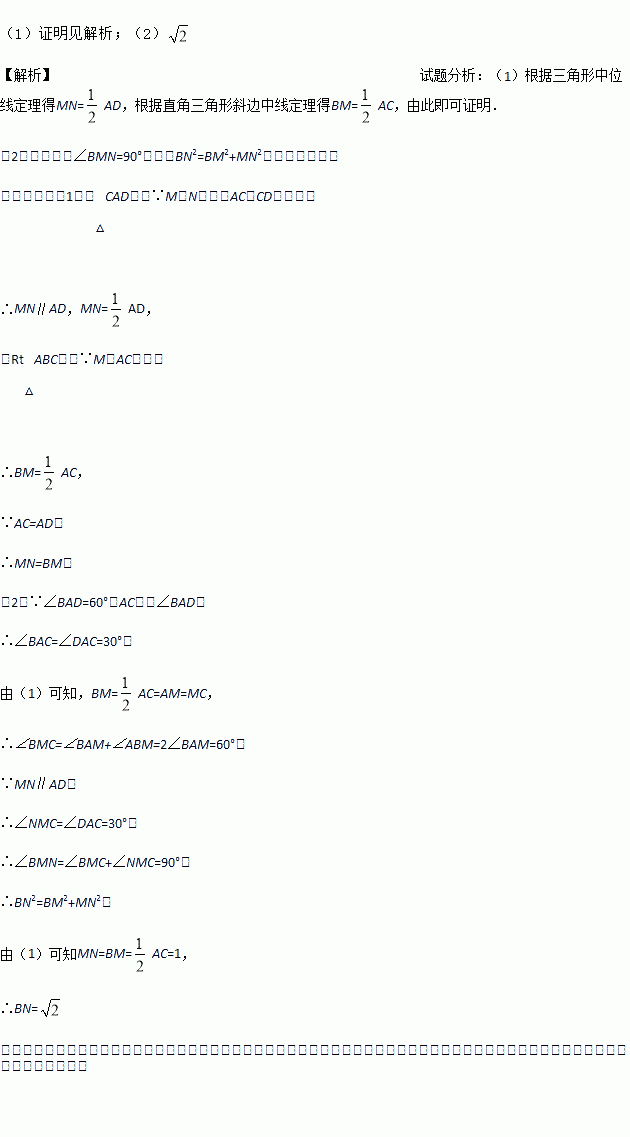 AC=AD,M,N分别为AC,AD的中点,连接BM,MN,BN.