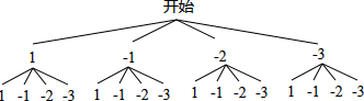 分析:首先根据题意画出树状图,然后由树状图求得所有等可能的结果以及两次摸出的小球上两个数字乘积是负数的情况,再利用概率公式即可求得答案.