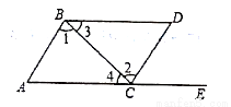 如图所示,点E在AC的延长线上,下列条件中能判断AB//CD的是( )