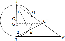 分析:(1)连接AE,利用直径所对的圆周角是直角,从而判定直角三角形,利用直角三角形两锐角相等得到直角,从而证明∠ABF=90°.