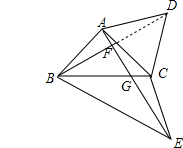分析 (1)根据等腰直角三角形的性质得到∠ABC=∠ACB=45°,由△ACD是等边三角形,得到∠ACD=∠DAC=∠ADC=60°,于是得到∠BAD=150°,由于AB=AD,于是得到∠ADB=∠ABD=15°,即可得到结论;