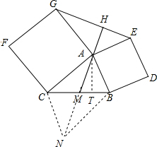 分析 (1)延长AM到点N,使MN=MA,连接BN,先证得△MBN≌△MCA,得到∠BNM=∠CAM,NB=AC,从而得到BN∥AC,NB=AG,进一步得到∠NBA=∠GAE,根据SAS证得△NBA≌△GAE,即可证得结论;