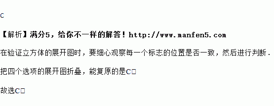 如图,有一个正方体纸盒,在它的三个侧面分别画有三角形、正方形和圆,现在用一把剪刀沿着它的 棱剪开成一个平面图形,则展开图可以是( )