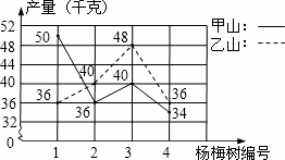 经济效益初步显现,为了分析收成情况,他分别从两山上随意各采摘了4棵树上的杨梅,每棵的产量如折线统计图所示.