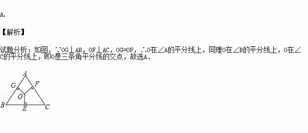 A.三角形三条角平分线的交点