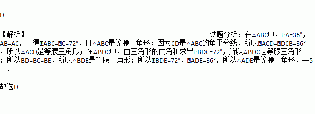 如图,在△ABC中,∠A=36°,AB=AC,BD是△ABC的角平分线,若在边AB上截取BE=BC,连接DE,则图中等腰三角形共有( )