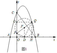 (3)如图1中,当以AB为直径⊙F与x轴相切于点D时,满足条件,设⊙F交y于P、G,连接GQ、PD、DQ.作QH⊥x轴于H.![]()