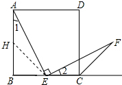 (2)在AB上截取BH=BE,连接HE,则△BHE是等腰直角三角形,AH=CE,证出∠AHE=∠ECF,∠1=∠2,由ASA证明△AHE≌△ECF,得出对应边相等即可.