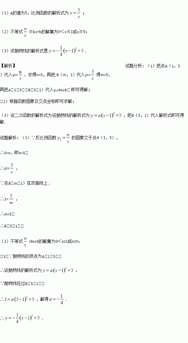 如图,在平面直角坐标系中,一次函数的图象y1=kx+b与反比例函数