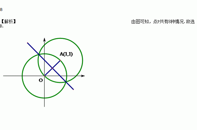 在直角坐标系中,O为坐标原点,已知A(1,1),在坐标轴上确定点P,使△AOP为等三角形,则符合条件的点P的个数共有( )