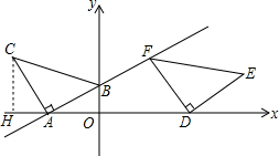 x+1,再确定B点坐标(0,1),作CH⊥x轴于H,如图,根据等腰直角三角形的性质得AC=AB,∠BAC=90°,接着证明△ABO≌△CAH,得到OB=AH=1,OA=CH=2,于是可确定C点坐标(-3,2),然后根据平移的性质得点F的纵坐标与C点的纵坐标相等,则可把y=2代入y=
