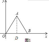 分析 (1)如图1,过A作AD⊥OB于D,由△AOB是等边三角形,得到OD=$\frac{1}{2}$OB=2,根据△OAB的面积为4$\sqrt{3}$,求出AD=2$\sqrt{3}$,于是得到结果;