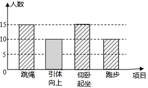 分析 (1)用整体1减去跳绳、仰卧起坐和跑步所占的百分比,即可求出a的值,再根据引体向上和跑步所占的百分比一样,即可得出引体向上的人数,从而补全统计图;
