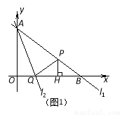 (本题12分)如图,过点A(0,3)的直线l1与x轴交于点B,tan∠ABO=