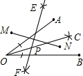 分析:连接MN,作线段MN的垂直平分线EF,再作∠AOB的平分线OC,EF与OC的交点即为点P.
