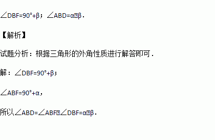如图,有两根竹竿AB、DB靠在墙角上,并与墙角FCE形成一定的角度,测得∠CAB,∠CDB的度数分别为α,β.用含有α,β的代数式表示∠DBF和∠ABD的度数.