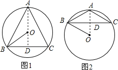 解:如图1,当△ABC是锐角三角形时,连接AO并延长到BC于点D,