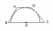 如图,梯形ABCD中AD//BC,半圆O的直径在BC上,且与另三边相切,如果AB=2,CD=3,则BC=(    )。