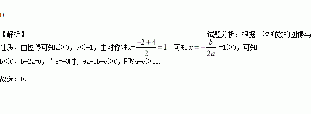 A. c>﹣1 B. b>0 C. 2a+b≠0 D. 9a+c>3b