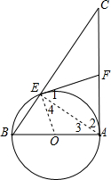 分析 连接OE、AE,由AB是⊙O的直径,得到∠AEB=90°,推出∠CEA=90°.根据F为AC边上的中点,得到CF=FA=EF,根据等腰三角形的性质得到∠1=∠2,∠3=∠4,推出∠1+∠4=∠2+∠3,根据直角三角形的性质得到∠BAC=∠2+∠3=90°,于是得到∠FEO=∠1+∠4=90°.即可得到结论.