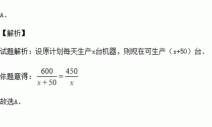 某工厂现在平均每天比原计划多生产50台机器,现在生产600台机器所需时间与原计划生产450台机器所需时间相同.设原计划平均每天生产x台机器,根据题意,下面所列方程正确的是( )