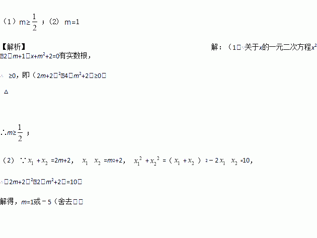 已知关于x的一元二次方程x2﹣2(m+1)x+m2+2=0.