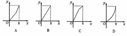 如图,在长方形ABCD中,CD=5,BC=3,点P从起点D出发,沿DC、CB向终点B匀速运动。设点P所走过的路程为x,点P所经过的线段与线段AD、AP所围成图形的面积为y,y随x的变化而变化。在下列图象中,能正确反映y与x的函数关系的是