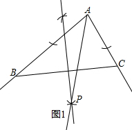 分析 (1)作∠BAC的平分线和线段BC的垂直平分线,两线交于点P,则点P即为所求;