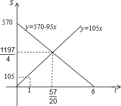 解答 解:如图所示,交点的实际意义:S坐标是甲和乙相遇时距离B地的路程.t坐标是小明和小李相遇时行驶的时间.