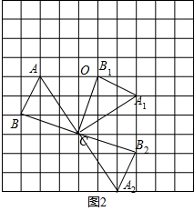分析 (1)利用网格特点和旋转的性质可作出点A和C的对应点D和E,从而得到△DBE;(2)利用网格特点和旋转的性质可作出点A和B的对应点A1和B1,从而得到△A1B1C;(2)利用网格特点和旋转的性质可作出点A和B的对应点A2和B2,从而得到△A2B2C.