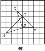 解答 解:(1)如图1,△DBE为所作;(2)如图2,△A1B1C为所作.(3)如图2,△A2B2C所作.