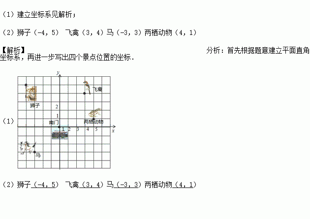 这是一个动物园游览示意图,如果以南门为坐标原点,东西为x轴,南北为y轴,