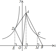 则S△AOD=S梯形DENA-S△DEO-S△AON=$\frac{1}{2}$(DE+AN)×EN-4-4=$\frac{1}{2}$×(4+8)×3-8=10.