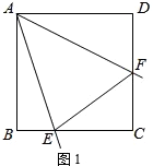 命题:如图1,在正方形ABCD中,已知:∠EAF=45°,角的两边AE、AF分别与BC、CD相交于点E、F,连接EF.求证:EF=BE+DF.