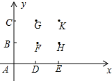 分析 根据题意容易得出以其中四点为顶点的正方形共有6个;分别以A、E、K、C为直角顶点的直角三角形各有4个,分别以B、D、G、H为直角顶点的直角三角形各有5个,以F的为8个,即可得出结果.
