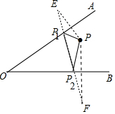 分析 作点P关于直线OA的对称点E,点P关于直线OB的对称点F,连接EF交OA于P1,交OB于P2,连接PP1,PP2,△PP1P2即为所求.