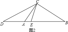 ④如图2,点D在BA延长线上,点E在边AB上,