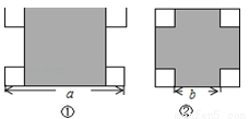 一个大正方形和四个边长相等的小正方形按图①、②两种方式摆放,则图②的大正方形中未被小正方形覆盖部分的面积是_______________________.(用a、b的代数式表示).
